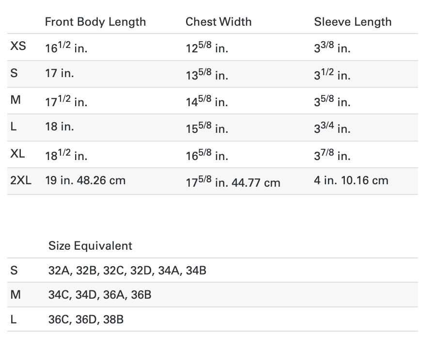 This tee fits small—we recommend sizing up for a comfier fit. Expect about 7% shrinkage after washing for a slightly snugger but still flattering shape.
