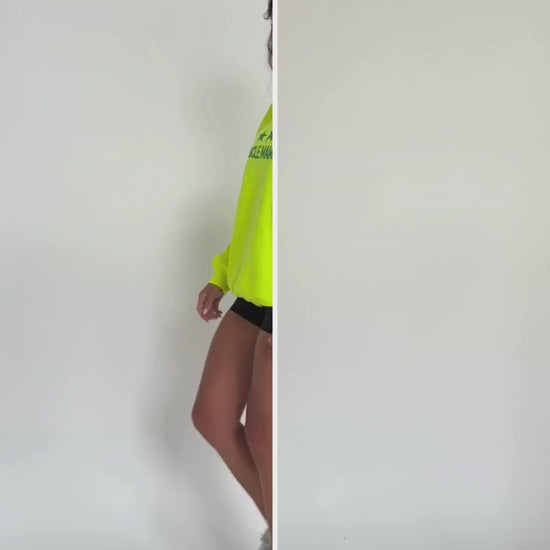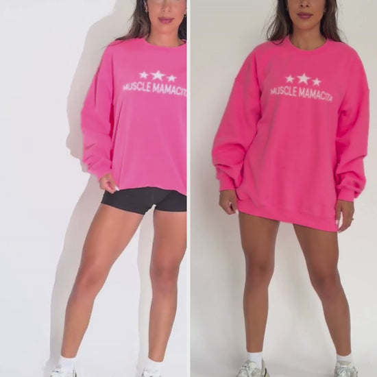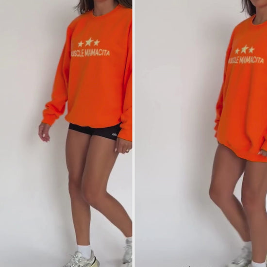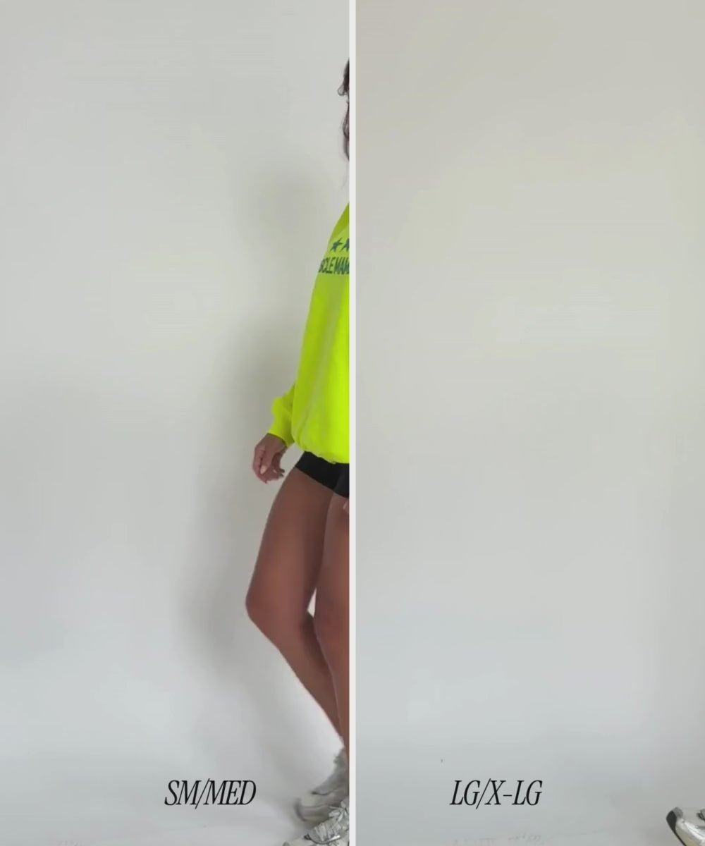 The muscle mamacita crewneck was made for late night errands, post-gym lounging, and everything in between. This oversized fit nails that sweet spot between cozy and cool, with bold bubble-print lettering inspired by our favorite villa drama. Wear it solo or layered—it’s giving neon main character energy all season long.